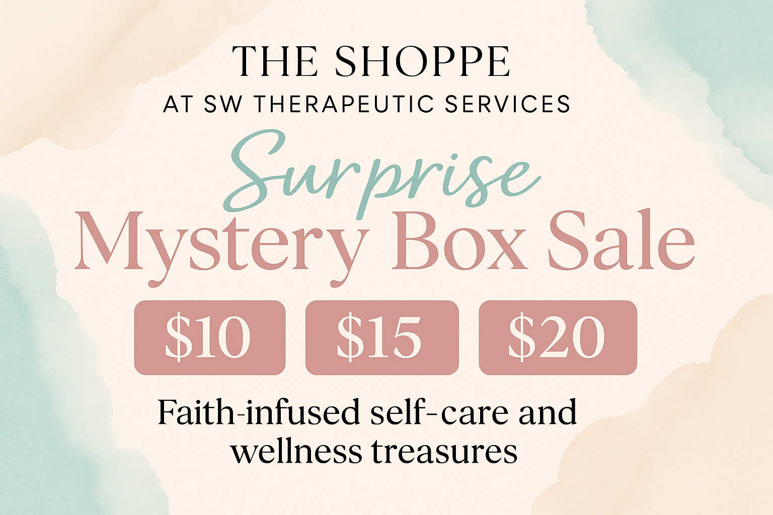 Each Shoppe Surprise Mystery Box is thoughtfully curated with uplifting, faith-inspired treasures from our wellness and lifestyle collections. Every box includes a surprise mix of customer favorites, like mugs, tumblers, shirts, journals, and more, chosen to refresh your spirit and brighten your day.